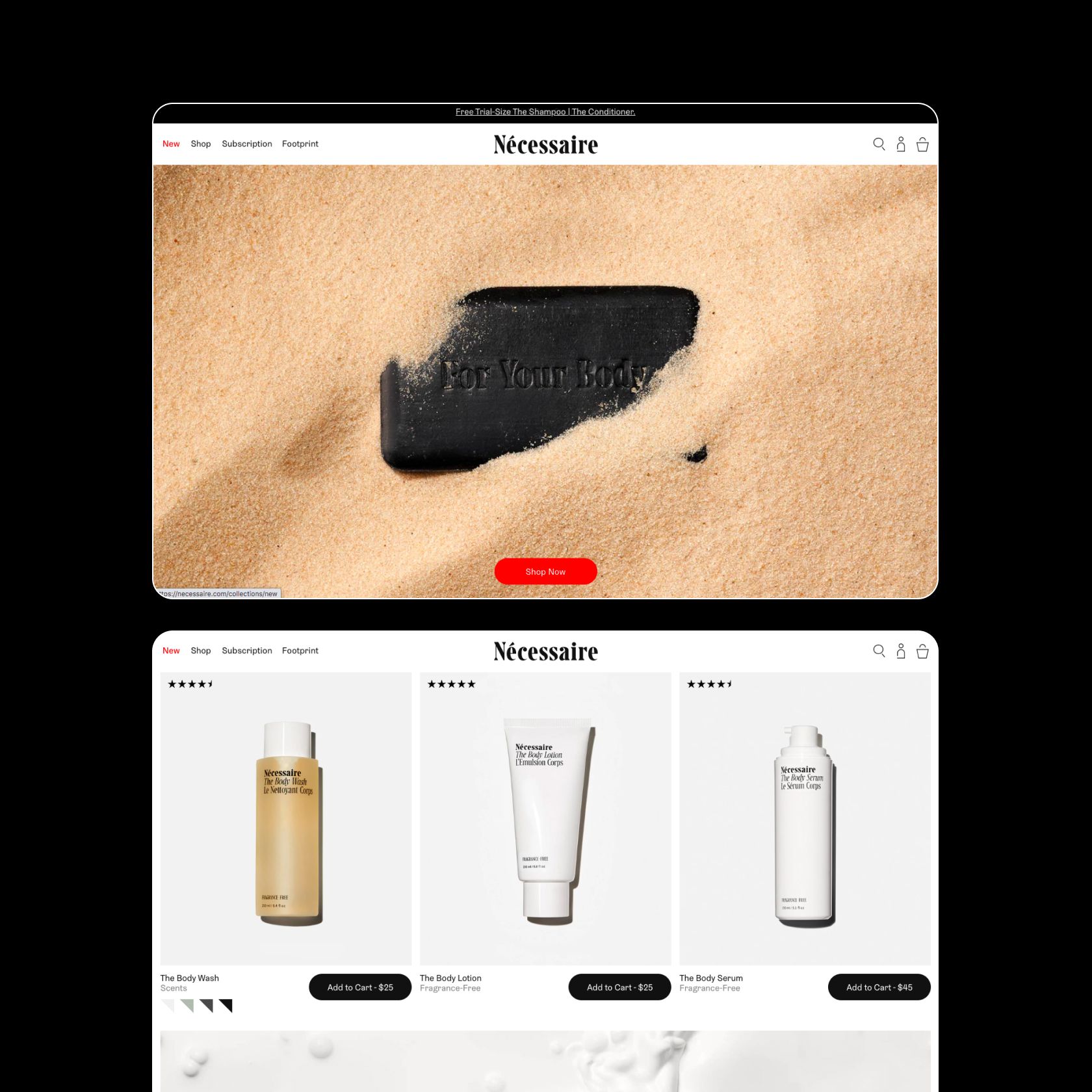 Nécessaire offers a stylish line of body care products made with high-quality ingredients that support health and wellbeing. The client Heat Waves brought on our team as the development parnter for the project. Bean used a headless cms approach using Shopify and Vue.js which allowed for a premium custom ecomm experience.