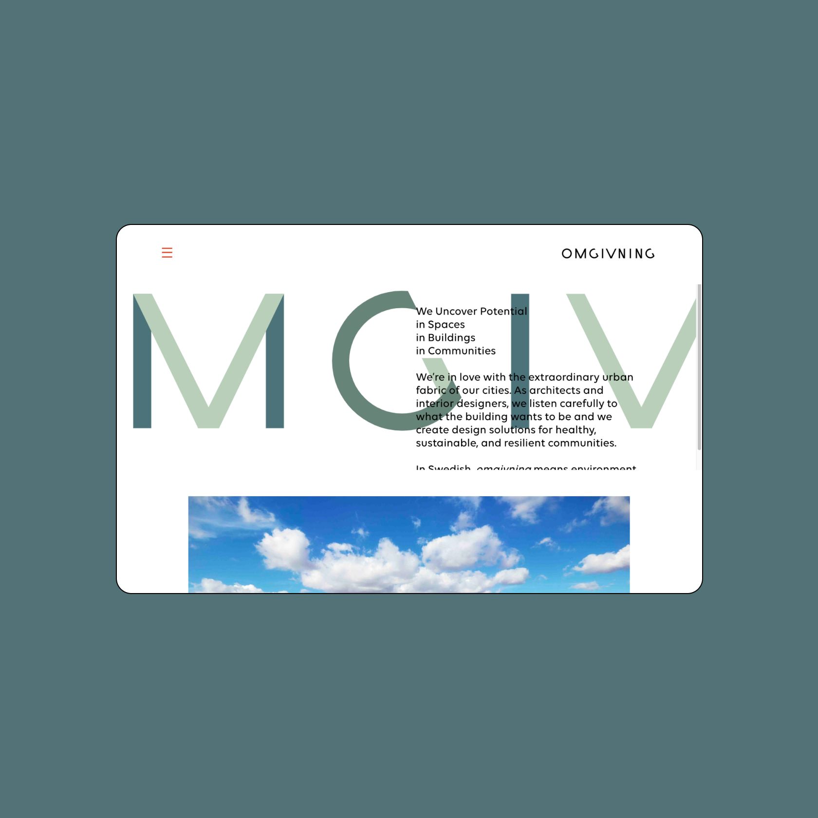 Omgivning is an architecture firm based out of Downtown Los Angeles. In collaboration with design studio Yummy Colours, Bean built Omgivning a site worthy of their cutting edge work. Our Team used a modern tech stack of Vue/Nuxt.JS alongside Contentful as CMS.