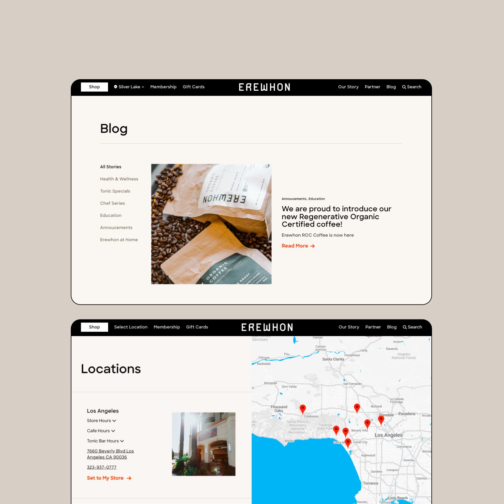 Pioneers of the organic and macrobiotic food movement, Erewhon, approached us in need of a refreshed marketing site to reflect the high standard of their innovative and discerning brand. They needed their website to be stylistically cohesive with their effortless in-store experience while maintaining their position as a source of truth and education for the community.